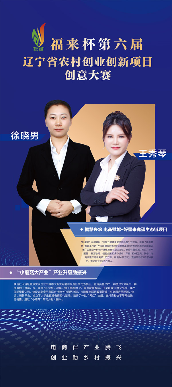 项目分为农产品产销和平台服务两大类,每类分别产生一等奖两个。我市好星来农业科技开发有限公司董事长王秀琴凭借“智慧兴农 电商赋能——好星来禽蛋生态链”项目获得农产品服务类一等奖,将与另外三个一等奖项目一同代表辽宁省参加全国农村创业创新项目创意大赛。